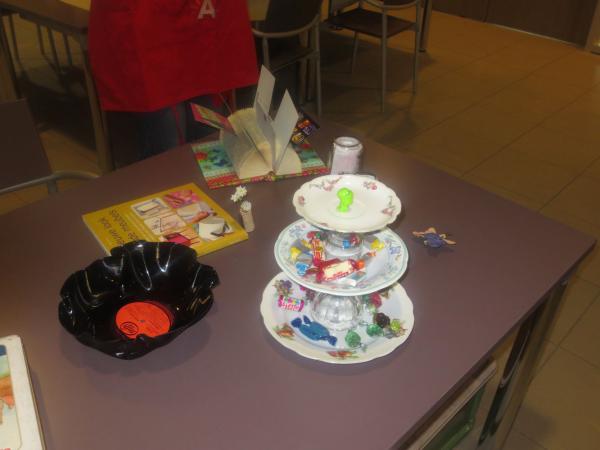 LP-fruitschaal en koekjes-etagère